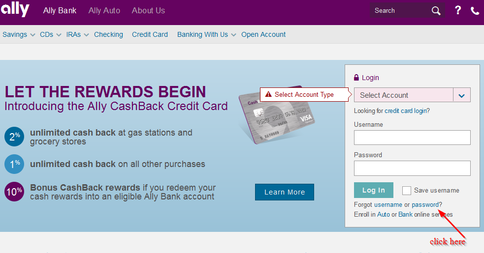 Step 1-Open your web browser and go to https://www.ally.com/