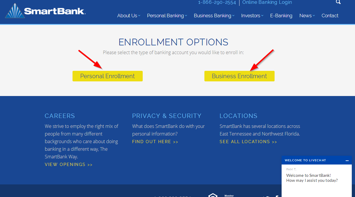 Step 2-Click either personal enrollment or business enrollment depending on the account that you want to open